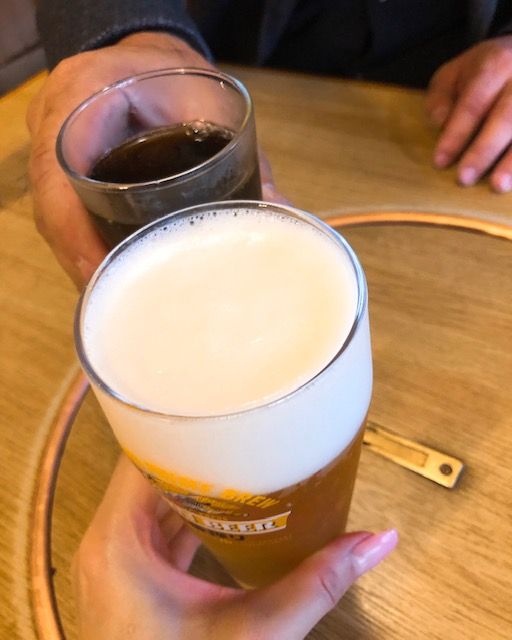 紅葉を見た後のビールは格別でした